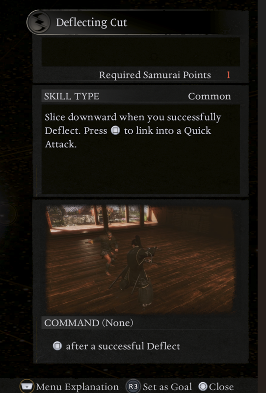 - Deflecting Cut — Immediate counter-attack following a successful Deflect. The keystone of Dual Swords counter-offensive play — parry, then punish instantly.