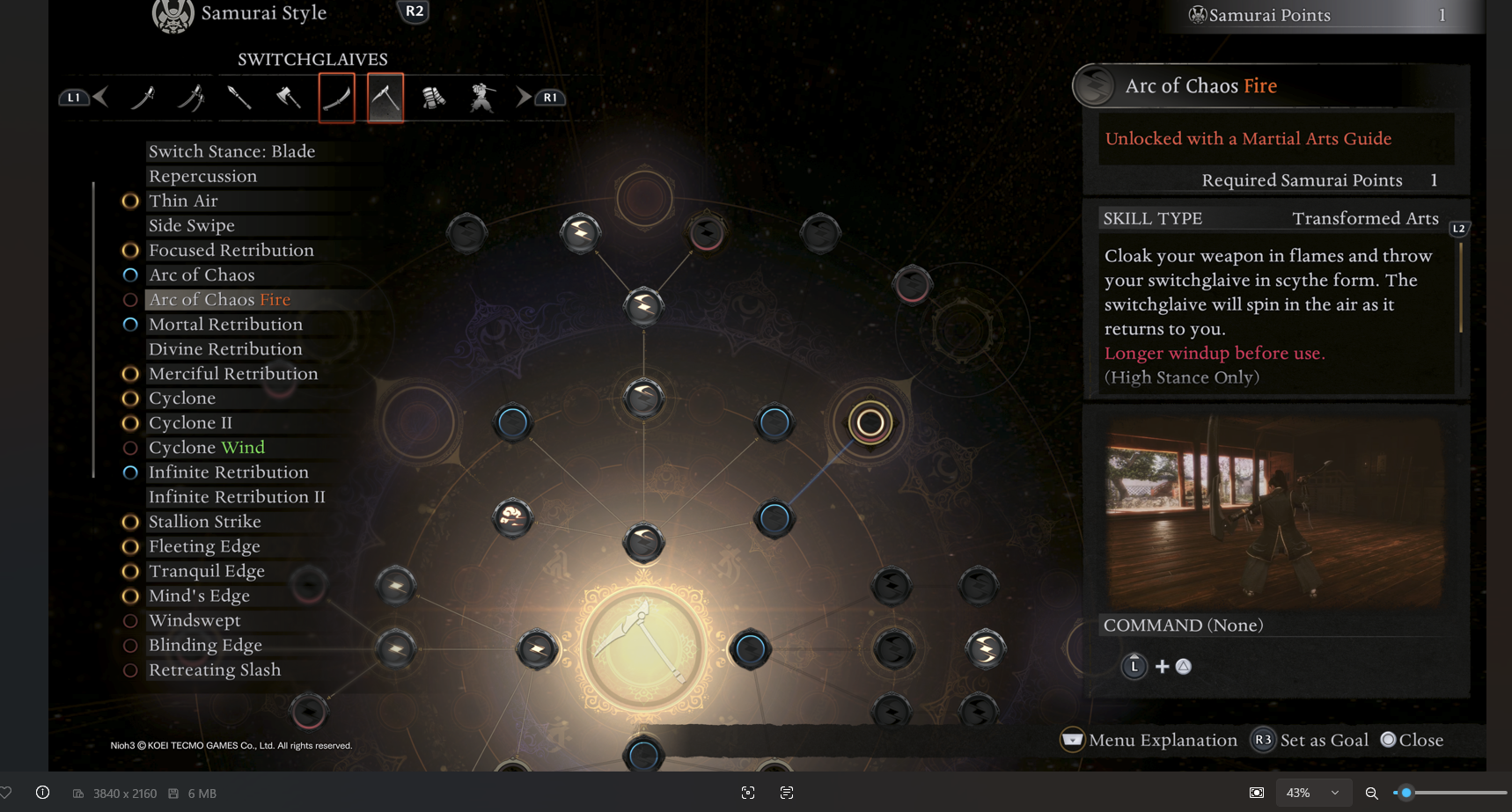 Priority Skills: Deflect (even on a ranged weapon, parry opportunities matter for Ki generation), Arts Proficiency bonuses from the Samurai skill tree (the Spear's Martial Arts benefit heavily from Arts uptime), and medium armor proficiency skills to maximize mobility without sacrificing defense.