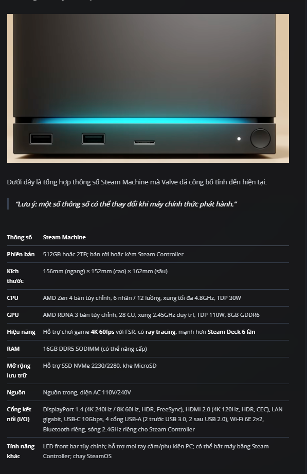 Ngày 12/11/2025, Valve bất ngờ công bố Steam Machine mới — thiết bị PC lai console nhỏ gọn, hướng tới việc thu hẹp khoảng cách giữa PC và console truyền thống. Chưa có giá, chưa có ngày ra mắt, nhưng phản ứng đã quá lớn.